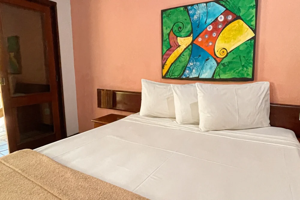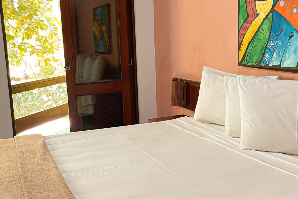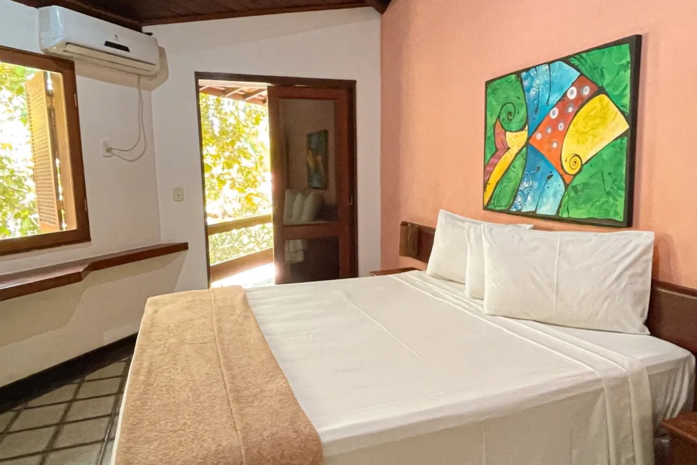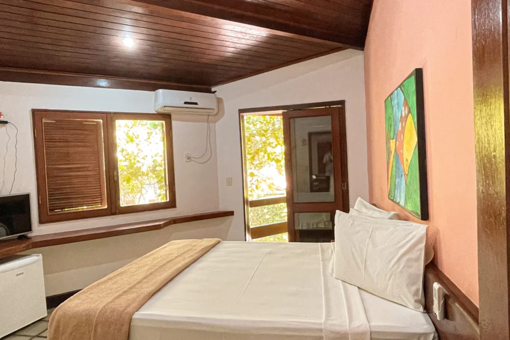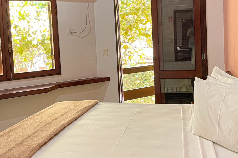 Localizado próximo à recepção, sem varanda, no bloco dos quartos frente à estrada da balsa. Esta acomodação comporta até 2 pessoas. Todos os apartamentos são não fumantes. As acomodações podem ser no piso térreo ou piso superior, dependendo da disponibilidade no dia da sua chegada. A numeração do quarto também não pode ser garantida.